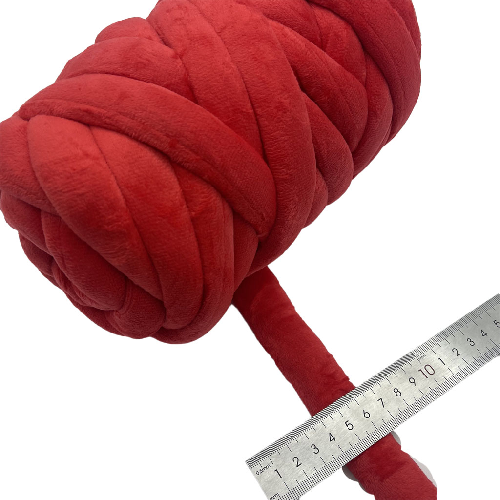Is snáth mhaisiúil poileistear mórdhíola a tháirgtear sa mhonarcha é an táirge seo, atá deartha go sonrach le haghaidh feidhmeanna cniotála méar. Tógtar an snáth mar fheadán veilbhit le trastomhas comhsheasmhach 2cm, rud a thugann foirm shubstaintiúil tríthoiseach dó. Is meascán de poileistear agus cadás é a chomhdhéanamh, a chomhcheanglaíonn cobhsaíocht struchtúrach agus athléimneacht poileistear le teagmháil nádúrtha cadáis. Cuireann an teaglaim ábhar seo le cruth sainithe agus airíonna tadhlacha an snáth. Éascaíonn an struchtúr feadánacha réamhdhéanta an próiseas cniotála méar, rud a ligeann do chruthú éifeachtach fabraicí agus gabhálais uigeach gan gá le huirlisí traidisiúnta. Déanann a thoisí agus a thógáil oiriúnach é chun míreanna a tháirgeadh le uigeacht toirtiúil agus bhog.