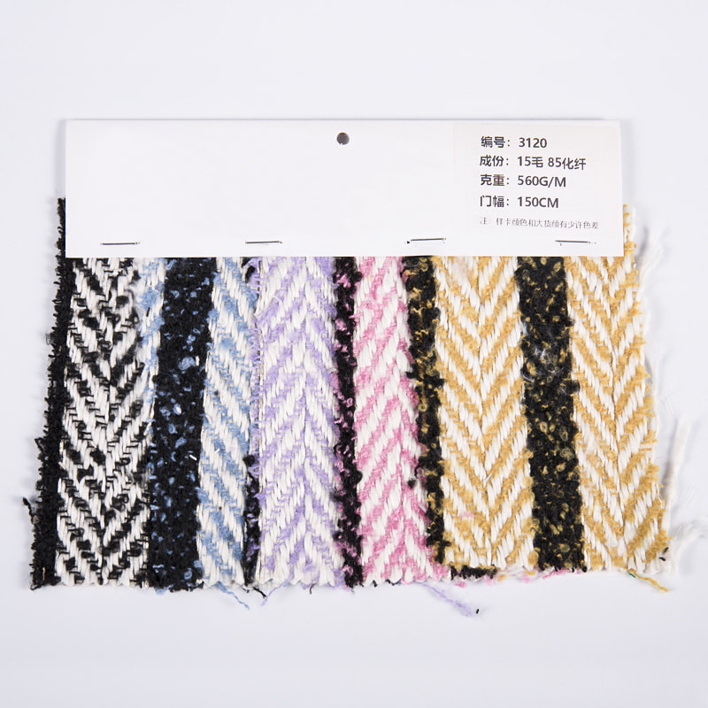 OEM/ODM Fabraic Tweed Olann Sciathán Tiubh Jacquard 3120. Tá níos mó ná 20 bliain de thaithí tionscail againn agus tá cáil orainn mar gheall ar fhaibricí agus snátha ar ardchaighdeán.