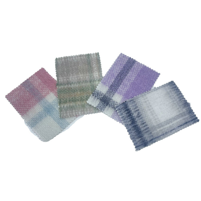 Is é an fabraic seo, atá ainmnithe mar airteagal 3940, teicstíle jacquard comhdhéanta de olann 10% agus 90% snáithíní eile. Agus mais in aghaidh an aonaid de 600 g/m aige, cuireann sé tógáil trom-mheáchain i láthair. Comhcheanglaíonn an dromchla corcra patrún plaid le uigeacht carn fada, a baineadh amach trí theicnící speisialaithe fíodóireachta agus críochnú jacquard. Cruthaíonn an próiseas déantúsaíochta seo lúba snáithíní leathnaithe ar an dromchla fabraice, rud a fhágann go bhfuil struchtúr tríthoiseach fhuaimnithe. Cuireann comhdhéanamh an chumaisc olann le hairíonna inslithe theirmigh na fabraice agus athléimneacht. Táirgeann na saintréithe teicniúla seo ábhar a bhfuil doimhneacht agus toirt an dromchla shubstaintiúil aige, rud a fhágann go bhfuil sé infheidhme maidir le cótaí móra ina bhfuil gá le teas ardaithe agus gné uigeachta.