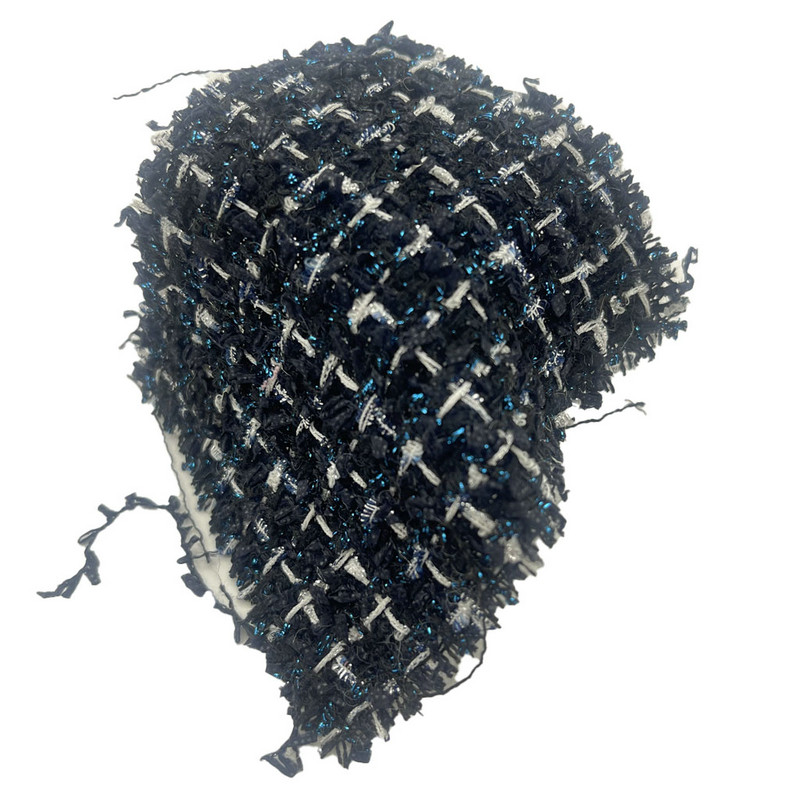 Is é an fabraic seo, atá ainmnithe mar airteagal 23511, teicstíle seiceála comhdhéanta de 86% poileistear agus 14% níolón. Le mais in aghaidh an aonaid achar 340 gsm, cuireann sé tógáil éadrom i láthair. Ionchorpraíonn an bonn gorm dorcha snáth miotalach gorm laistigh den phhatrún seiceála, rud a chruthaíonn éifeacht amhairc chodarsnachta trí fhrithchaitheamh solais éagsúla. Soláthraíonn an meascán poileistear-níolón cobhsaíocht tríthoiseach agus comhsheasmhacht struchtúrach. Cuireann cuimsiú na n-eilimintí miotalacha airíonna idirghníomhacha solais leis an dromchla fite. Déanann na sonraíochtaí teicniúla seo an fabraic bhruitíneach seo a bheith infheidhme maidir le héadaí ban áit a bhfuil gá le patrún sainithe a chur in iúl agus le mionathrú ar an dromchla.