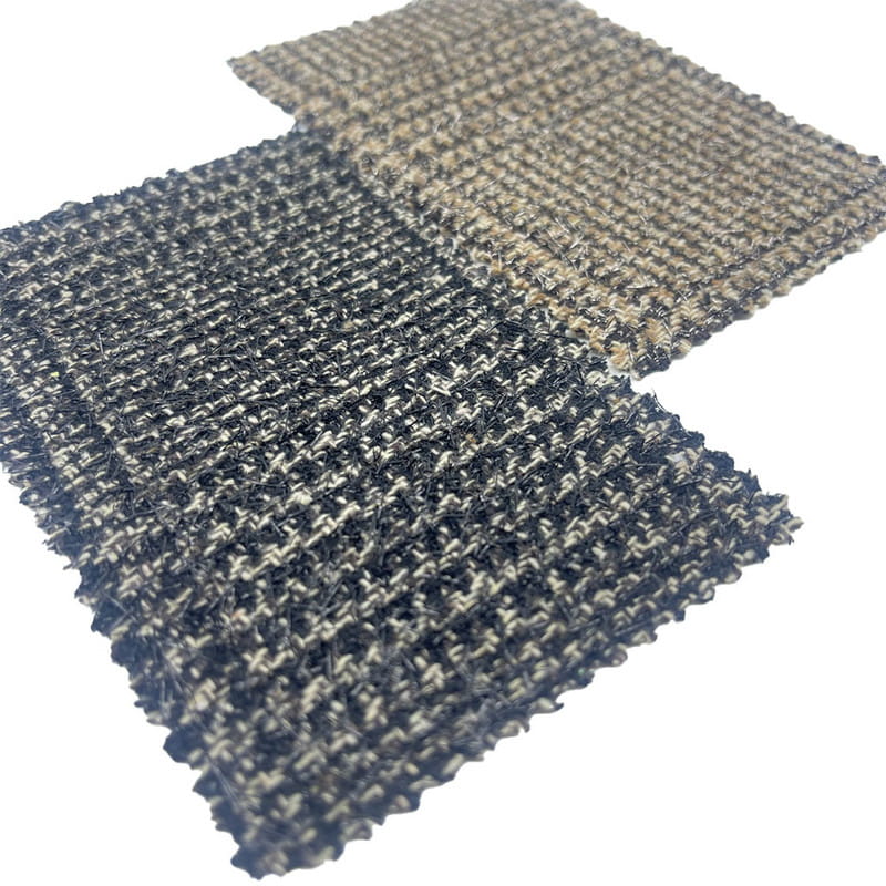 Is é an fabraic seo, atá ainmnithe mar airteagal 4336, teicstíle tweed comhdhéanta de olann 5% agus 95% snáithíní eile. Le mais in aghaidh an aonaid achar 550 g/m, cruthaíonn sé tógáil trom-mheáchan. Comhcheanglaíonn an dromchla dubh agus donn patrún seiceála le móitíf houndstooth, comhtháite le snáth miotalach le linn an phróisis fíodóireachta. Cruthaíonn an teicníocht seo dearadh ilchodach ina bhfuil na patrúin geoiméadracha treisithe ag eilimintí solas-léiritheacha. Tugann cuimsiú snáth miotalach éifeachtaí amhairc codarsnacha i gcoinne an bonn fite. Is éard a bhíonn mar thoradh ar na sonraíochtaí teicniúla ábhar a bhfuil castacht amhairc ilchisealach agus dlús struchtúrach aige, rud a fhágann go bhfuil sé infheidhme maidir le tionscadail ina bhfuil gá le patrún a chur in iúl agus le hathrú dromchla.